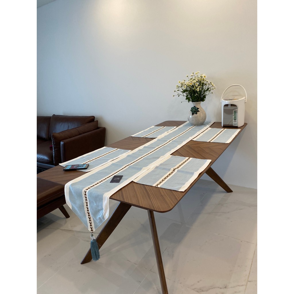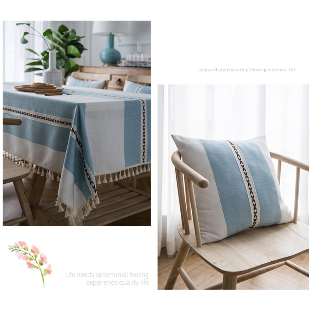 Nhà cửa & Đời sống > Trang trí nhà cửa > Khăn trải bàn || Khăn trải bàn kẻ đẹp Landecor sọc xanh trắng thêu hàng trái tim sang trọng- TB421Còn hàng