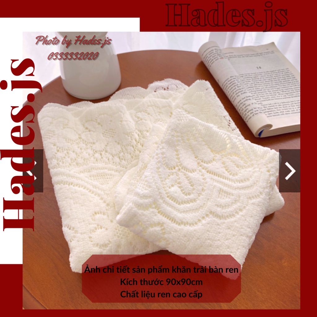 Giới thiệu Khăn trải bàn kích thước 90X90 ren - miếng lót bình hoa vintage decor nhà cửa - khăn phủ tab đầu giường Hades.js