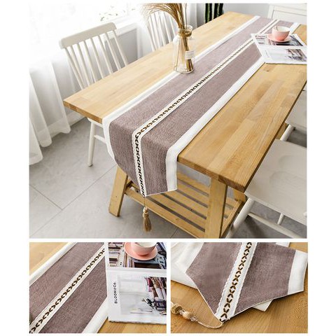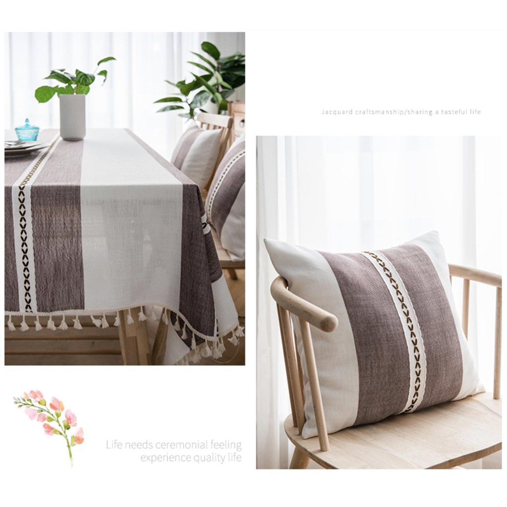 Nhà cửa & Đời sống > Trang trí nhà cửa > Khăn trải bàn || Khăn trải bàn Landecor mẫu kẻ sọc nâu trắng, thêu hàng trái tim sang trọng- TB422Còn hàng