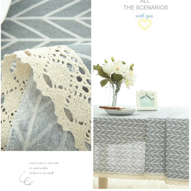 Nhà cửa & Đời sống > Trang trí nhà cửa > Khăn trải bàn || Khăn trải bàn Mũi tên xám viền ren (đủ kích thước) - B05Còn hàng