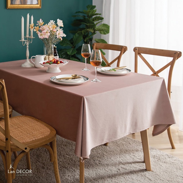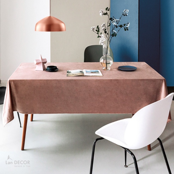 Khăn trải bàn nhung màu hồng trơn nhã nhặn Landecor- TB538-Hồng