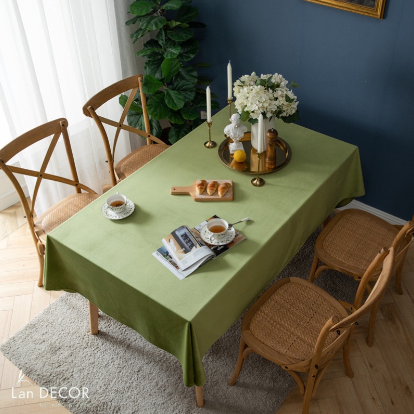 Giới thiệu Khăn trải bàn nhung trơn sang trọng Landecor- TB538-xanh cốm