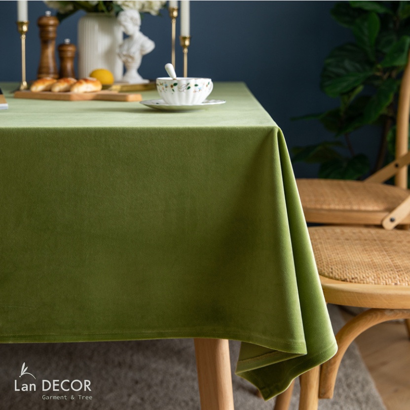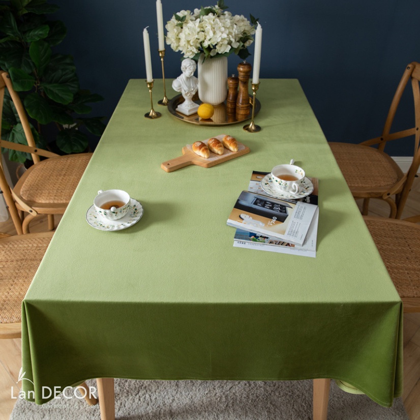 Khăn trải bàn nhung trơn sang trọng Landecor- TB538-xanh cốm