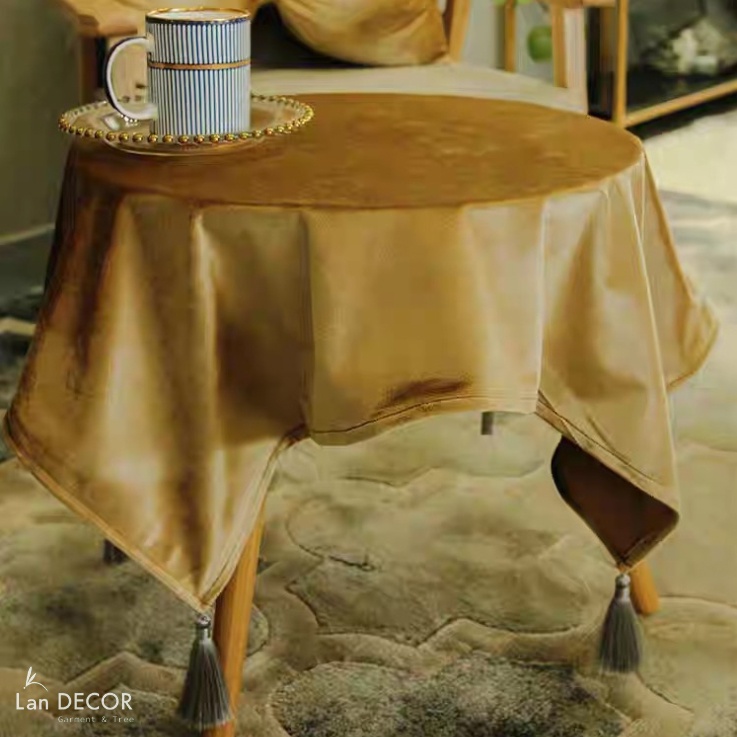 Giới thiệu Khăn trải bàn nhung trơn sang trọng Landecor- TB538-Vàng nâu nhạt
