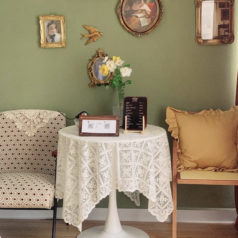 Nhà cửa & Đời sống > Trang trí nhà cửa > Khăn trải bàn || Khăn trải bàn phối ren họa tiết hoa hồng phong cách vintageCòn hàng