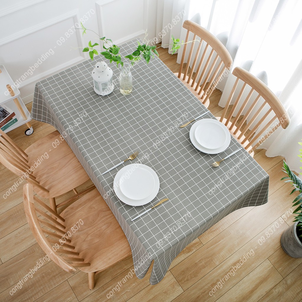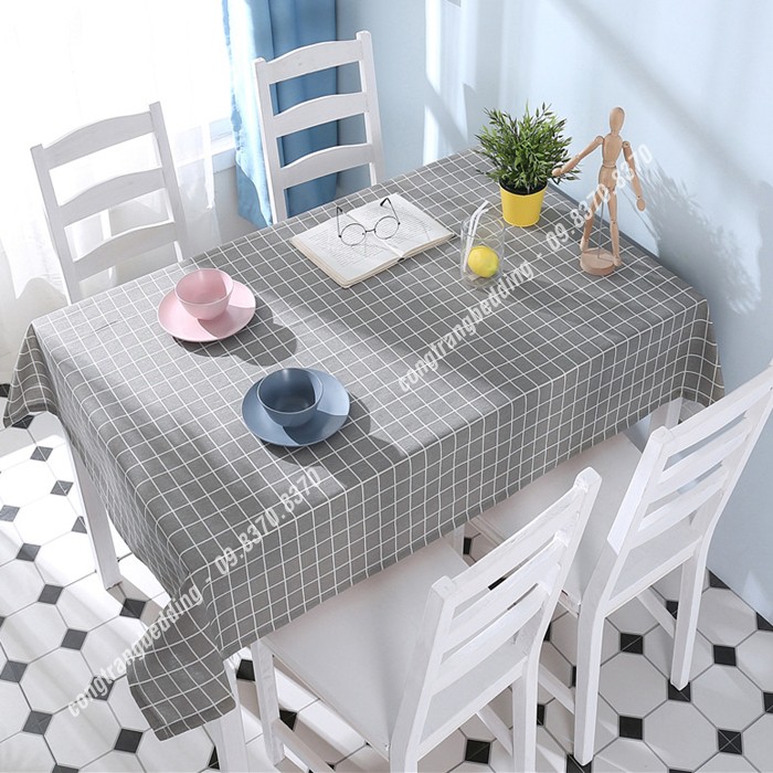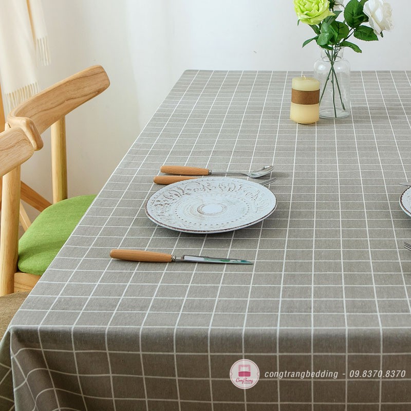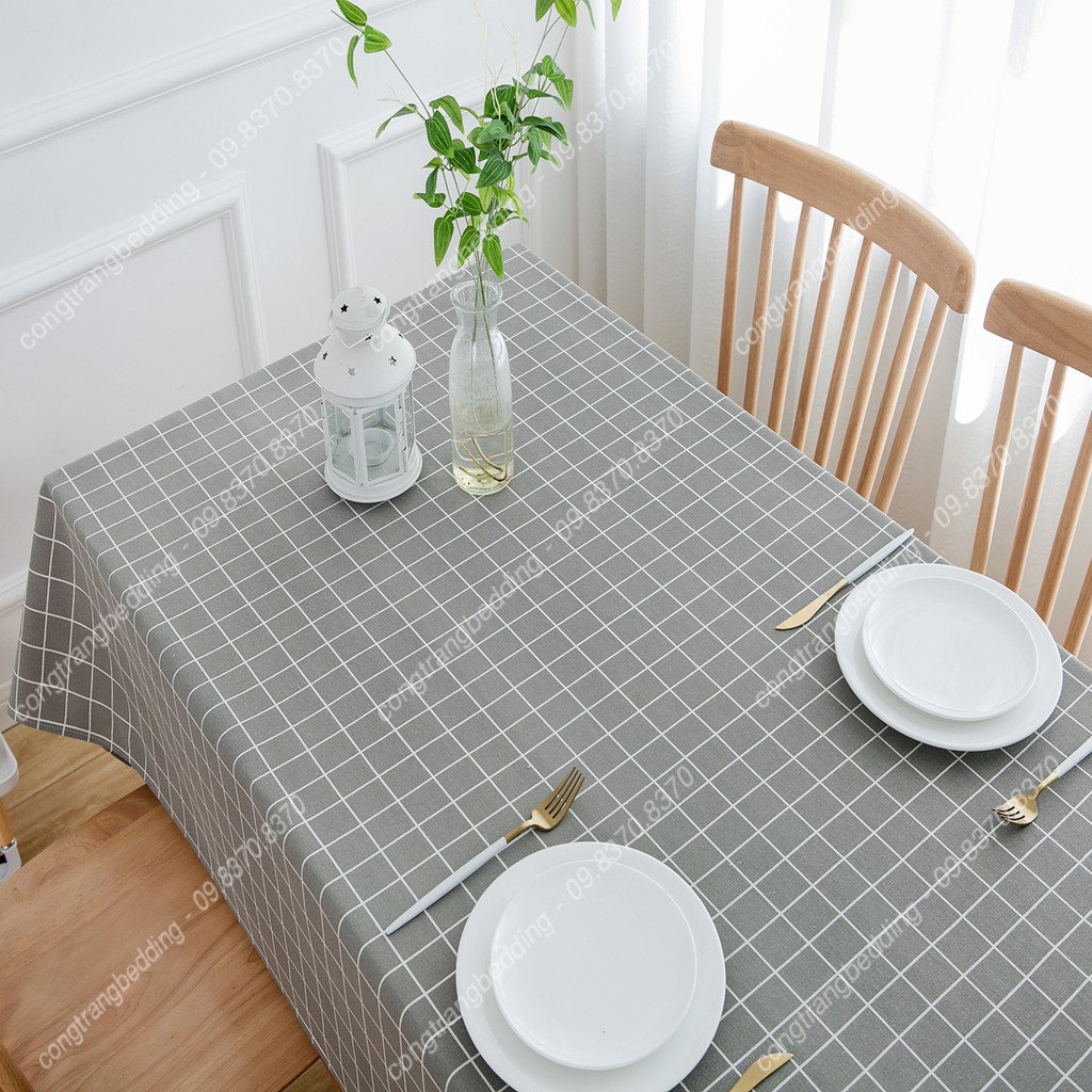 Giới thiệu Khăn trải bàn, phông nền chụp ảnh decor VẢI CANVAS, vải bố họa tiết Kẻ Caro Xám