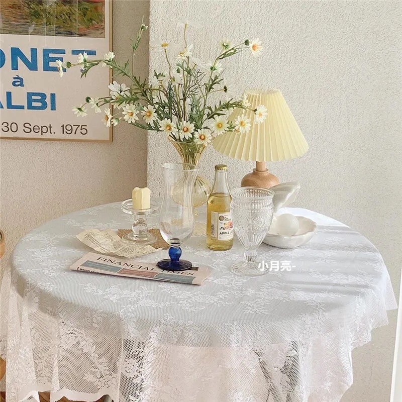 Khăn trải bàn ren hoa trắng thơ mộng Hàn Quốc vintage,Khăn dã ngoại picnic, Phông Nền Chụp Ảnh Trang Trí Bàn Học