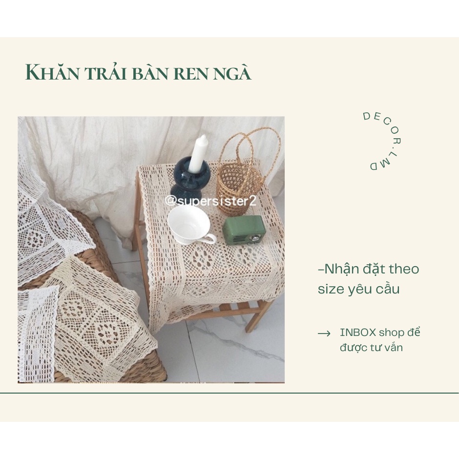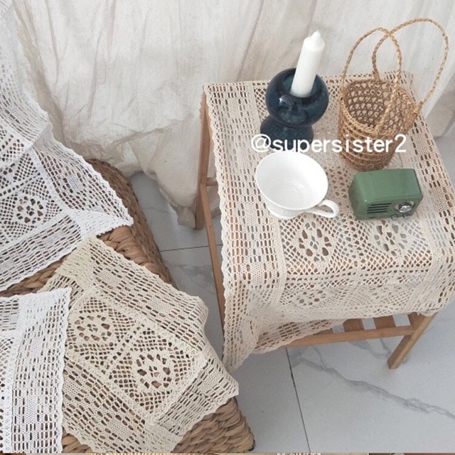 Nhà cửa & Đời sống > Trang trí nhà cửa > Khăn trải bàn || Khăn trải bàn ren màu ngà Hàn Quốc vintage,Khăn dã ngoại picnic, Phông Nền Chụp Ảnh Trang Trí Bàn HọcCòn hàng