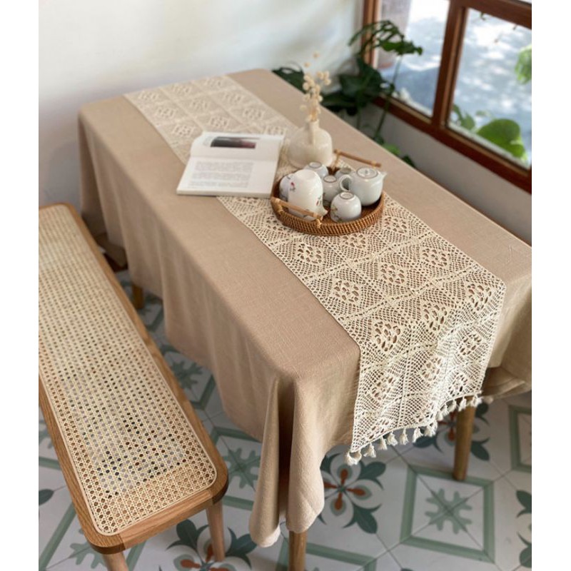 Khăn trải bàn ren móc vintage trang trí nhà cửa phong cách Âu decor phòng nội thất retro thủ công Lenhome