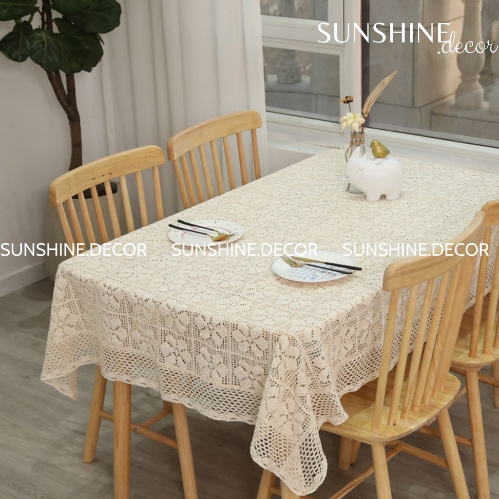 -Khăn ren trải bàn với những họa tiết hoa được phối từ sợi cotton móc không những có tác dụng tô điểm thêm cho chiếc bàn của bạn mà còn có tác dụng hút nước còn đọng lại ở bàn nếu bạn lau chưa kỹ, tránh làm ướt bàn. Sản phẩm có khả năng tạo ra ma sát giúp bình hoa, lọ hoa, cốc, ly, chén, bát ở trên không bị trơn trượt ngay cả với mặt bàn ướt. Do đó, sản phẩm không chỉ có tác dụng trang trí mà còn giúp bảo quản các vật dụng gia đình bạn tốt hơn. Nếu bạn yêu thích phong cách Vintage thì 1 chiếc khăn trải bàn ren phối hoa bằng sợi cotton sẽ là một lựa chọn tuyệt vời cho ngôi nhà của bạn. Bạn có thể trải khăn ở bất kì đâu, bàn, ghế sofa, hay phủ tab đầu giường đều là những gợi ý thích hợp.