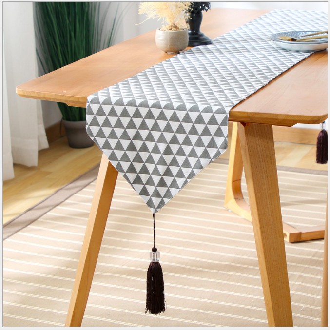 Nhà cửa & Đời sống > Trang trí nhà cửa > Khăn trải bàn || KHĂN TRẢI BÀN RUNNER LAN DECOR TBR319 HỌA TIẾT TAM GIÁC ĐEN TRẮNGCòn hàng