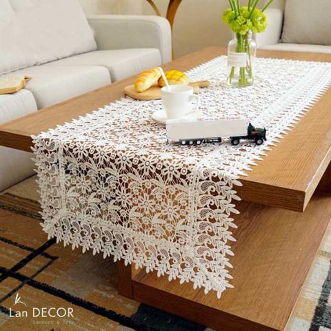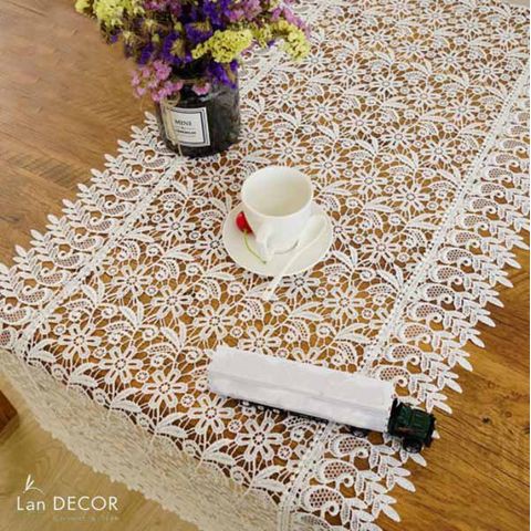 Khăn trải bàn runner, phủ tủ kệ đẹp mẫu ren hoa sang trọng Landecor - KR021