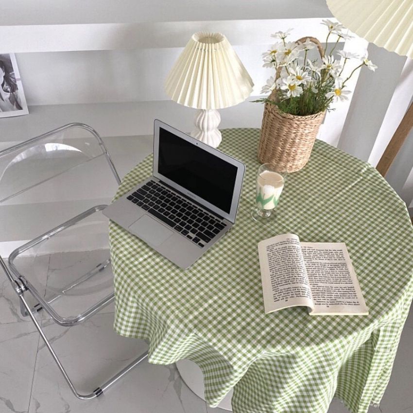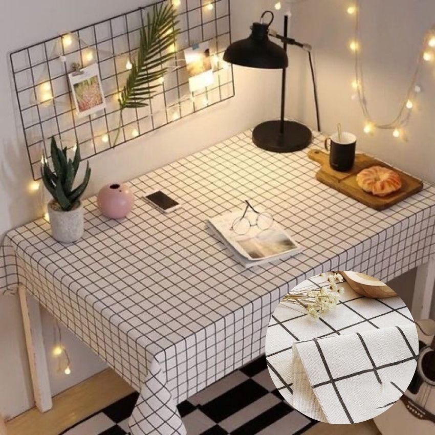 Giới thiệu Khăn trải bàn vải canvas sọc caro decor bàn chữ nhật, bàn tròn, bàn học, bàn ăn cho không gian thêm phần sang trọng