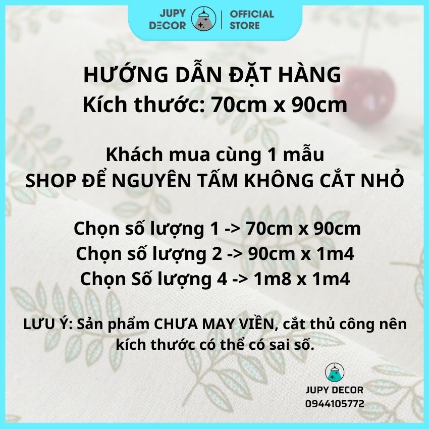 LƯU Ý: Sản phẩm CHƯA MAY VIỀN, do cắt thủ công nên kích thước có thể có sai số.