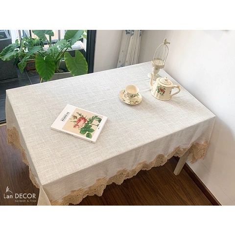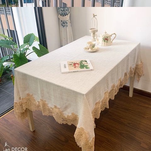 Nhà cửa & Đời sống > Trang trí nhà cửa > Khăn trải bàn || Khăn trải bàn sợi dệt kem viền ren phong cách Châu Âu Landecor - TB546Còn hàng