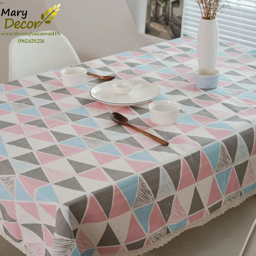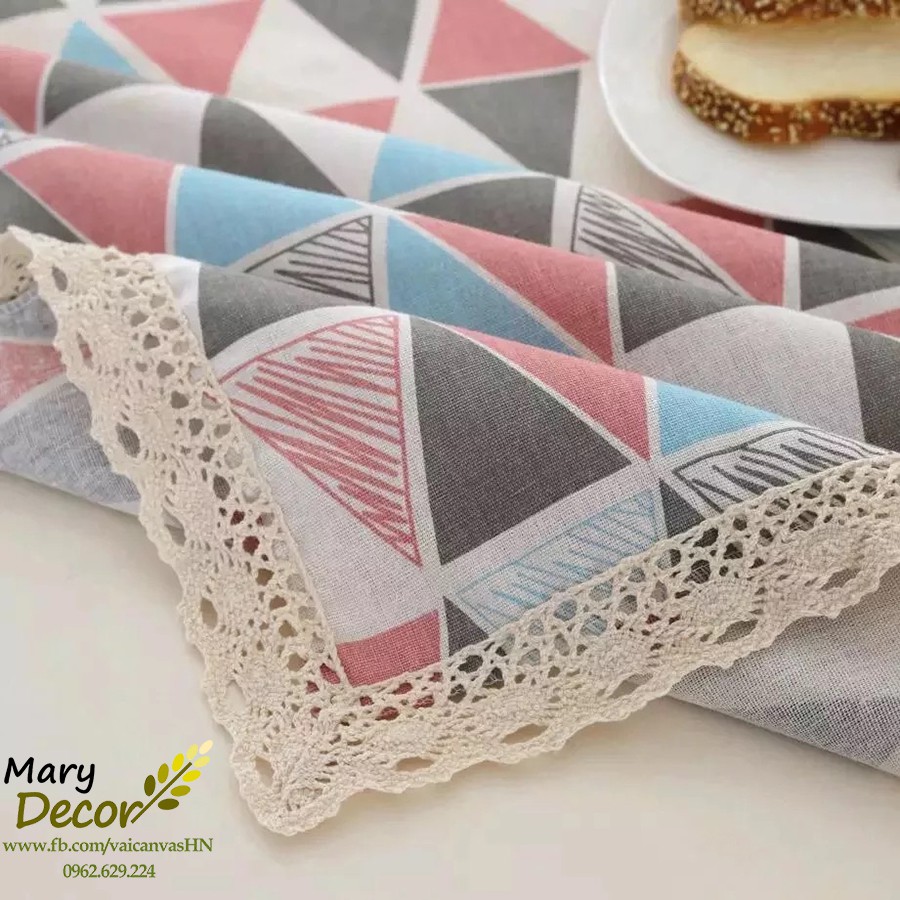 Khăn trải bàn Tam giác màu viền ren (đủ kích thước) -E08