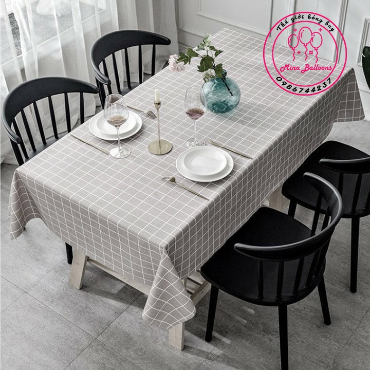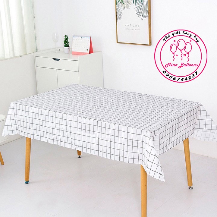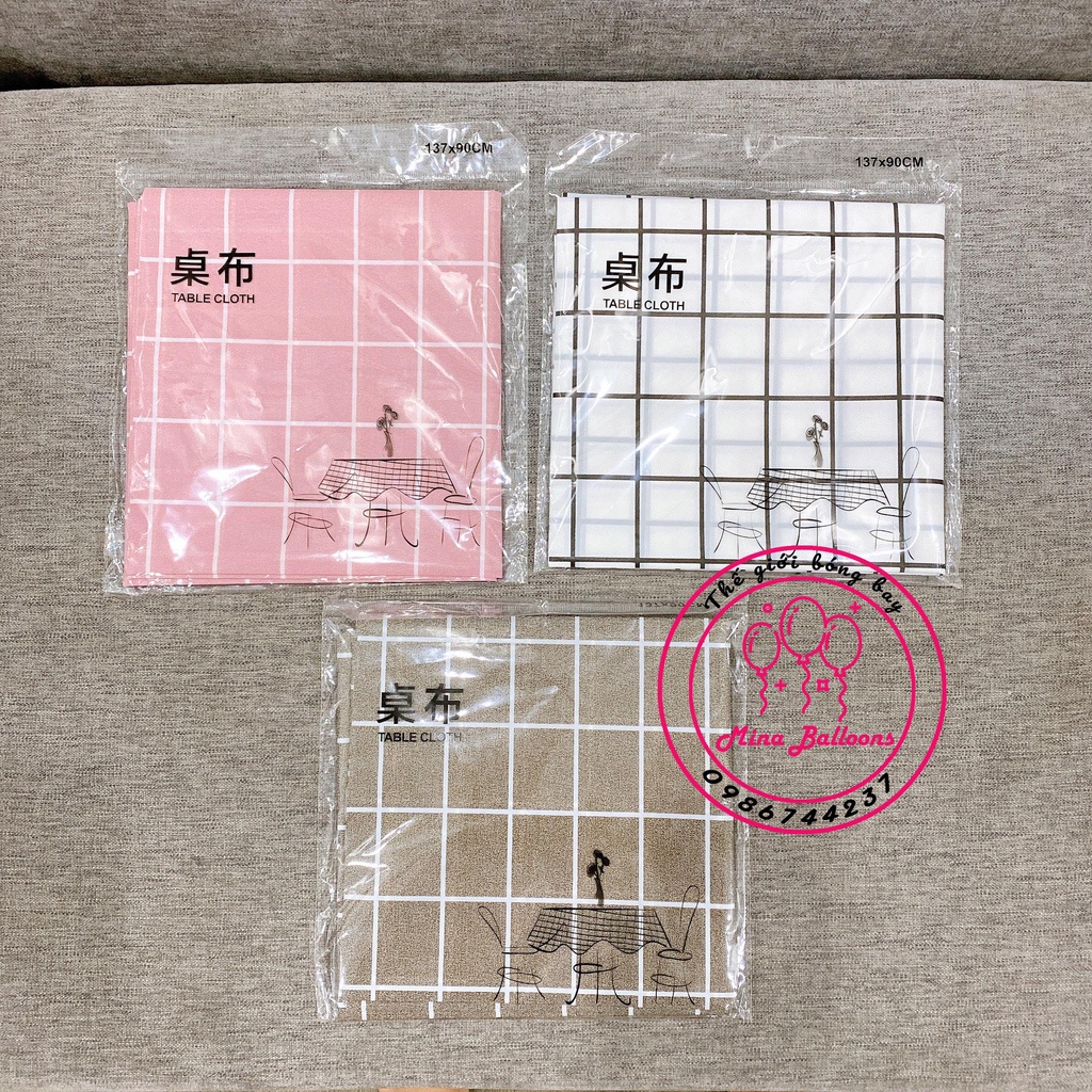 Khăn trải bàn tiệc sinh nhật kẻ caro chất nilon cỡ 90cm x 137cm