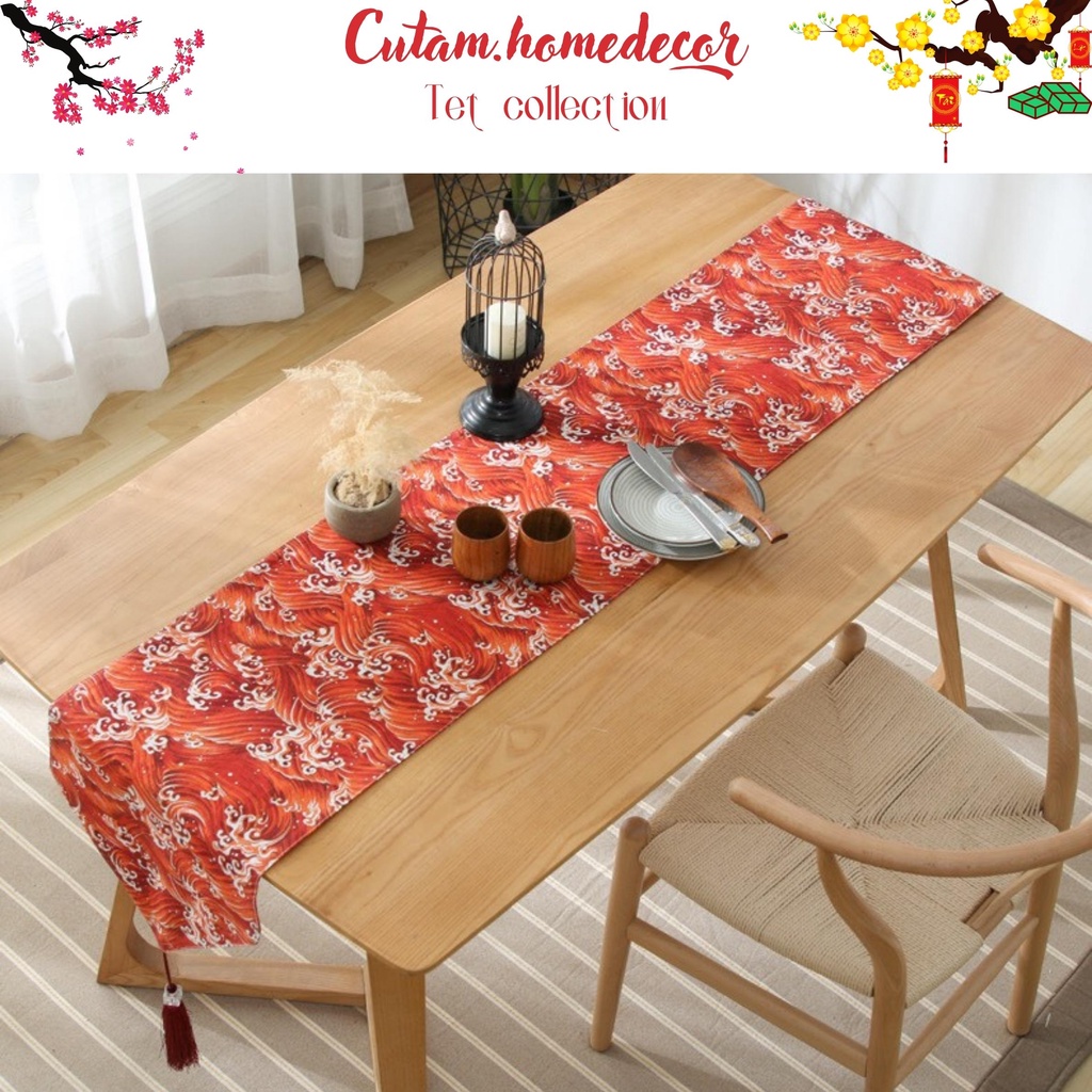 Nhà cửa & Đời sống > Trang trí nhà cửa > Khăn trải bàn || Khăn trải bàn trang trí Tết, khăn trải bàn Tết họa tiết lớp sóng may mắn - cutam.homedecorCòn hàng