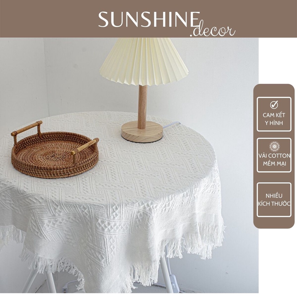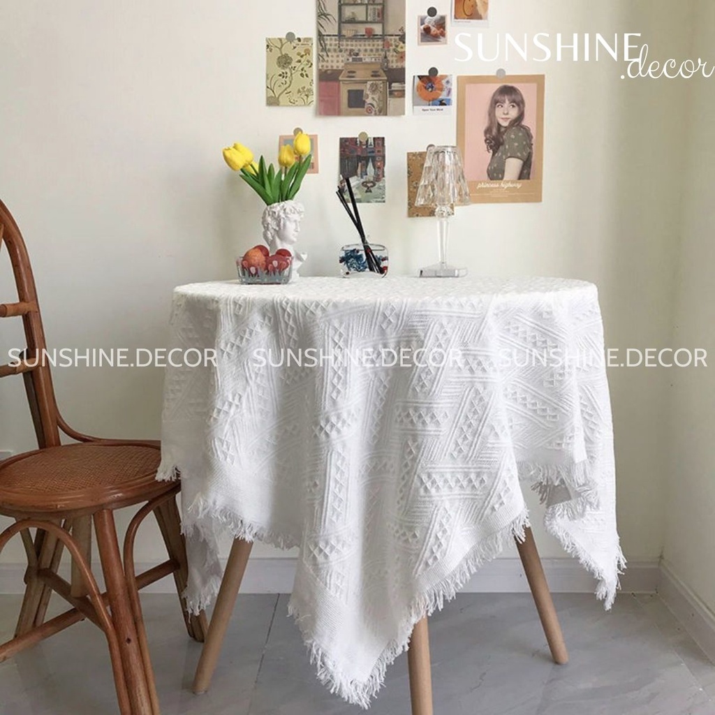 Nhà cửa & Đời sống > Trang trí nhà cửa > Khăn trải bàn || Khăn trải bàn trắng tua rua phong cách Bắc Âu mềm mạiCòn hàng