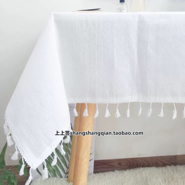 Khăn trải bàn trắng viền tua rua Hàn Quốc vintage,Khăn dã ngoại picnic, Phông Nền Chụp Ảnh Trang Trí Bàn Học