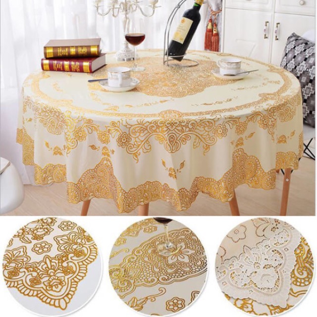 n sản phẩm: Khăn Trải Bàn Ăn Nhũ Vàng Chống Thấm Sang Trọng 1m5 và 1m8Kích Thước : Đường kính mặt bàn 1m5 và 1m8