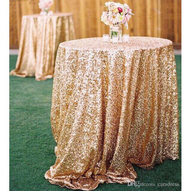 Khăn trải bàn tròn đính nhũ kim sang trọng trang trí tiệc cưới, sự kiện, sinh nhật đường kính 1.5m