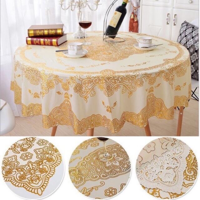 Nhà cửa & Đời sống > Trang trí nhà cửa > Khăn trải bàn || Khăn Trải Bàn Tròn Đường Kính 1m5 1m8 Nhũ Vàng Chống Thấm Sang TrọngCòn hàng