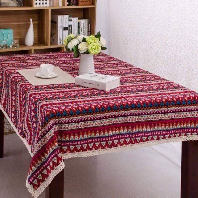 Nhà cửa & Đời sống > Trang trí nhà cửa > Khăn trải bàn || KHăn trải bàn vải bố họa tiết thổ cẩm đỏ có renCòn hàng