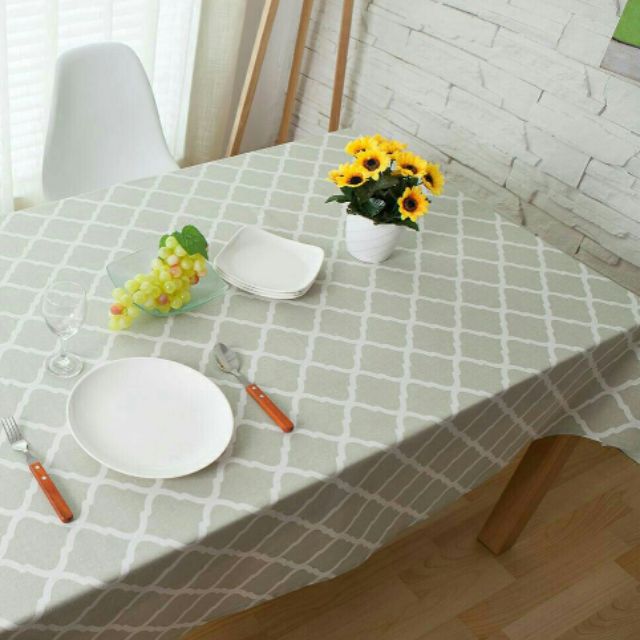 Khăn trải bàn dùng cho bàn tròn, bàn vuông, bàn oval, bàn chữ nhật đều được. Có nhiều kích thước cho khách chọnChất liệu vải bố canvas không thấm nước, dễ lau chùi.