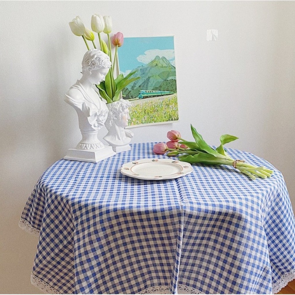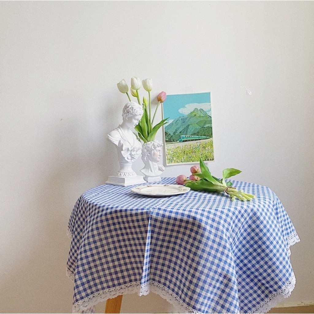 Nhà cửa & Đời sống > Trang trí nhà cửa > Khăn trải bàn || Khăn Trải Bàn Vải Canvas Caro Nhiều Màu Caro Xanh, Caro Tím Viền Ren Phong Cách Hàn QuốcCòn hàng