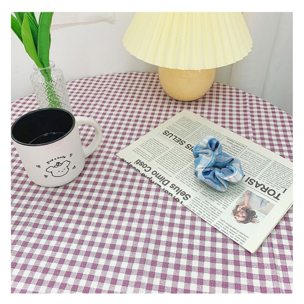 Khăn Trải Bàn Vải Canvas Caro Nhiều Màu Caro Xanh, Caro Tím Viền Ren Phong Cách Hàn Quốc