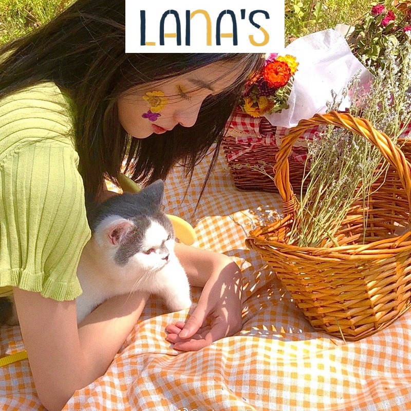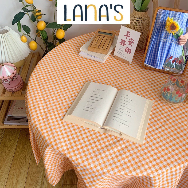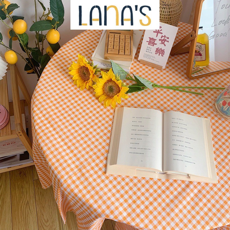 Nhà cửa & Đời sống > Trang trí nhà cửa > Khăn trải bàn || Khăn Trải Bàn Vải Canvas Caro Cam Viền Ren Phong Cách Hàn QuốcCòn hàng