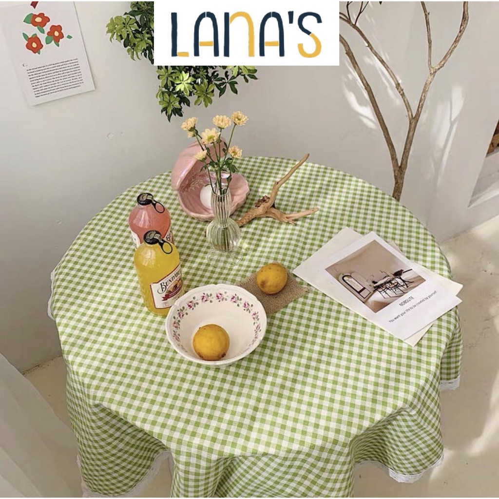 Nhà cửa & Đời sống > Trang trí nhà cửa > Khăn trải bàn || Khăn Trải Bàn Vải Canvas Caro Xanh Mint Viền Ren Phong Cách Hàn QuốcCòn hàng