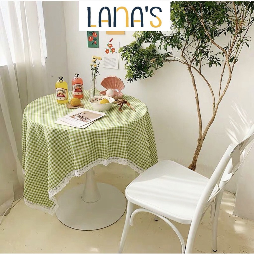 Giới thiệu Khăn Trải Bàn Vải Canvas Caro Xanh Mint Viền Ren Phong Cách Hàn Quốc