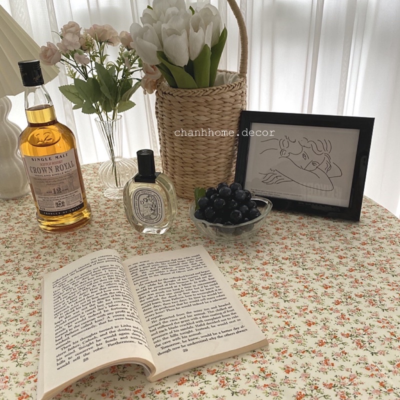 Khăn trải bàn vải Canvas hoạ tiết hoa nhỏ dùng trang trí phòng, bàn ăn, chụp hinh picnic