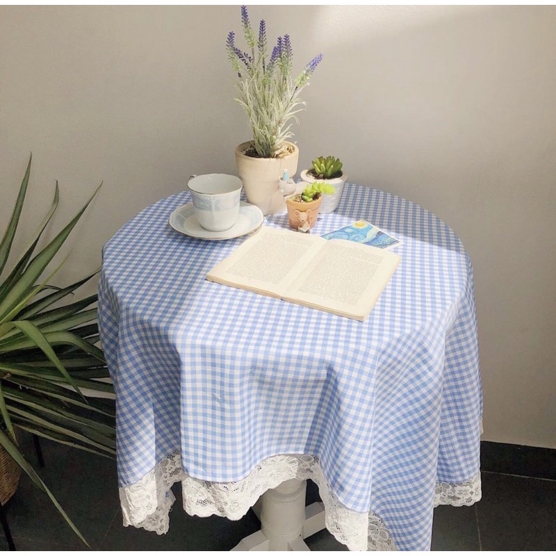 Khăn Trải Bàn Vải Caro Viền Ren