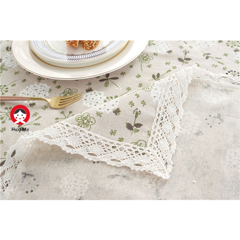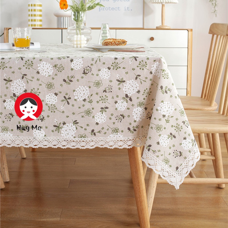 Khăn trải bàn vải cotton phối ren hoa bồ công anh màu xám hiện đại