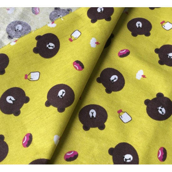 Khăn trải bàn vải linen mẫu hình gấu nâu và bánh sữa.Khăn có thể sử dụng làm khăn trải bàn, rèm treo, tấm trải đi picnic, phông nền chụp ảnh.