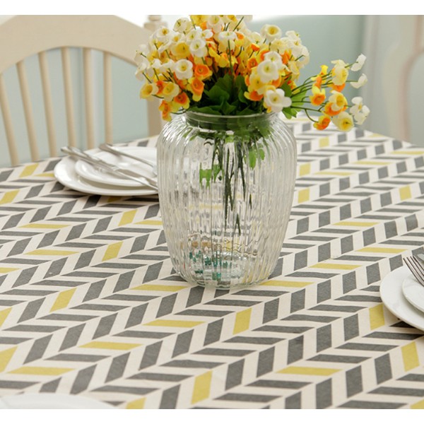 Khăn trải bàn vải kẻ vàng xám chéo zig zac.Khăn có thể sử dụng làm khăn trải bàn, tấm phủ đi picnic chụp ảnh ngoài trời cho bé, làm rèm treo... Khăn có thể đặt làm viền ren vintage.