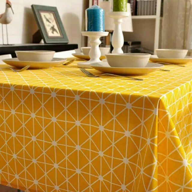 Nhà cửa & Đời sống > Trang trí nhà cửa > Khăn trải bàn || Khăn trải bàn vải linen mẫu kẻ vàngCòn hàng