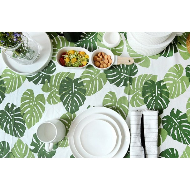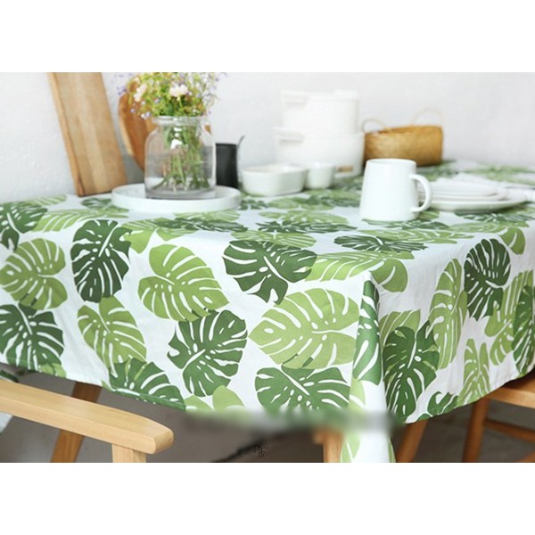 Khăn trải bàn vải mẫu lá cây xanh mát.Khăn có thể sử dụng làm khăn trải bàn, rèm treo, tấm trải đi picnic, phông nền chụp ảnh...