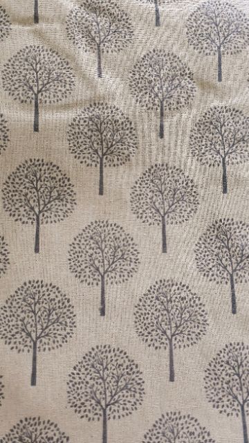 Khăn trải bàn vải mẫu cây tròn với nền hơi nâu mộc của vải thô.Khăn có thể sử dụng làm khăn trải bàn, may rèm, làm phông nền chụp ảnh...