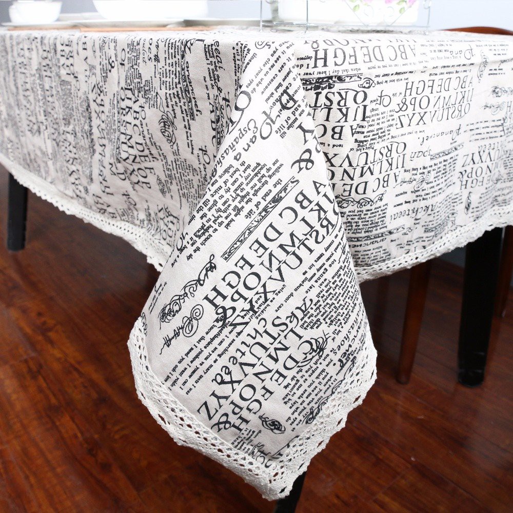 Khăn trải bàn vải mẫu chữ tiếng anh. Bạn có thể dùng làm khăn trải bàn hay làm phông nền chụp ảnh, rèm trang trí, thảm trải.Khăn được may có viền ren vintage hoặc không có viền ren.