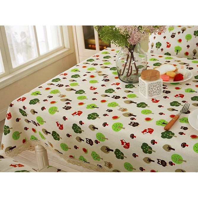 Giới thiệu Khăn trải bàn vải mẫu cú, cáo và cây xanh