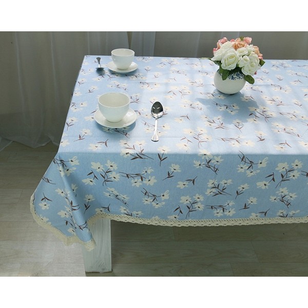 Khăn trải bàn vải mẫu hoa cúc trắng nền xanh dịu dàng. Khăn được may viền ren vintage hoặc không viền ren tùy theo lựa chọn đặt của bạn.Khăn có thể sử dụng làm khăn trải bàn, rèm treo, tấm trải đi picnic, phông nền chụp ảnh.