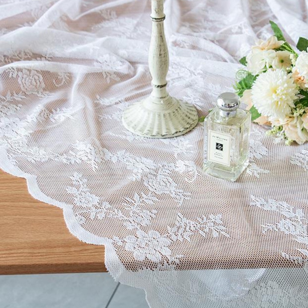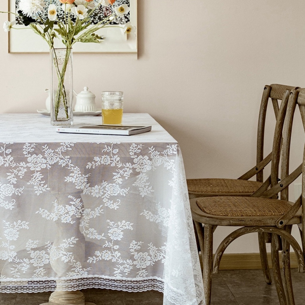 Nhà cửa & Đời sống > Trang trí nhà cửa > Khăn trải bàn || Khăn trải bàn vải voan ren hoa trắng decor nhà cửa phong cách vintage lãng mạnCòn hàng