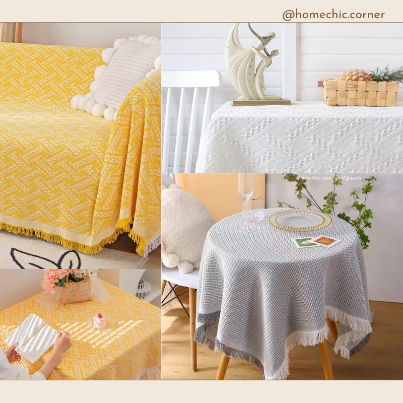 Nhà cửa & Đời sống > Trang trí nhà cửa > Khăn trải bàn || Khăn trải bàn viền tua rua, thảm picnic, chăn ghế sofa phong cách retro | HOME CHIC CORNERCòn hàng