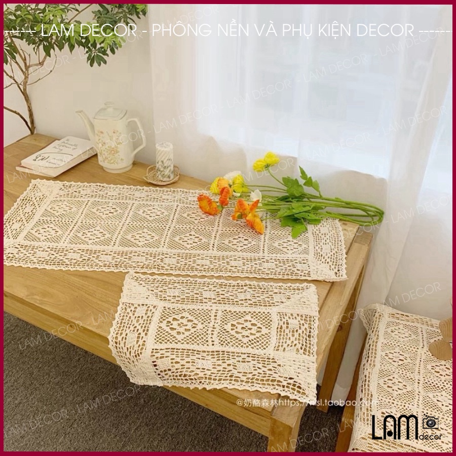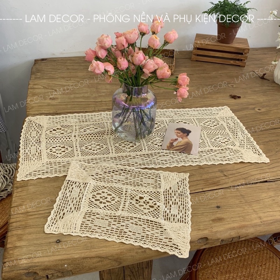 Nhà cửa & Đời sống > Trang trí nhà cửa > Khăn trải bàn || Khăn trải bàn vintage - Khăn ren trải bàn hình chữ nhật decor phòng khách, phòng ngủCòn hàng