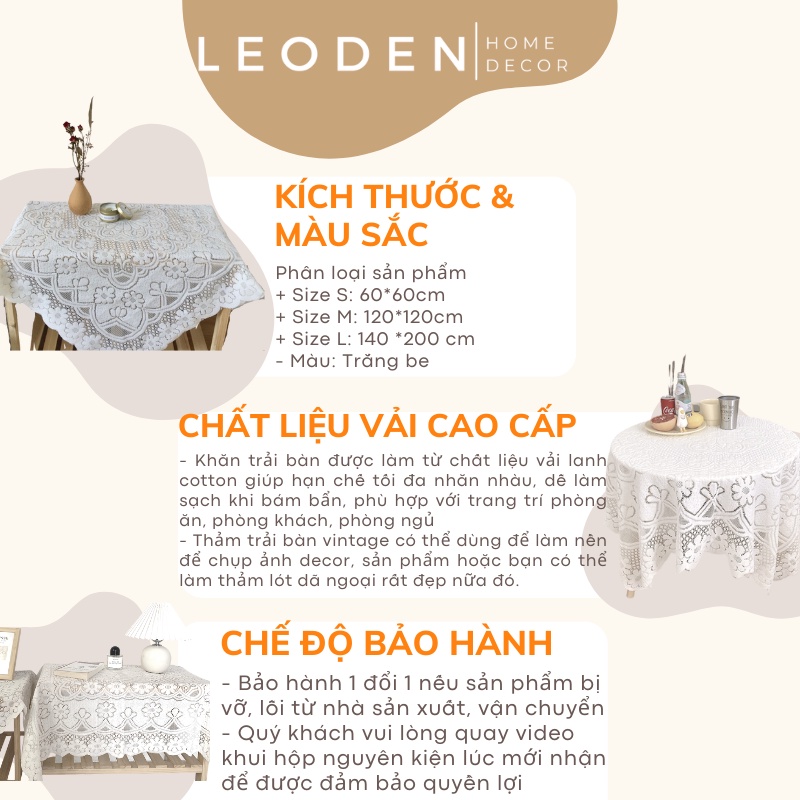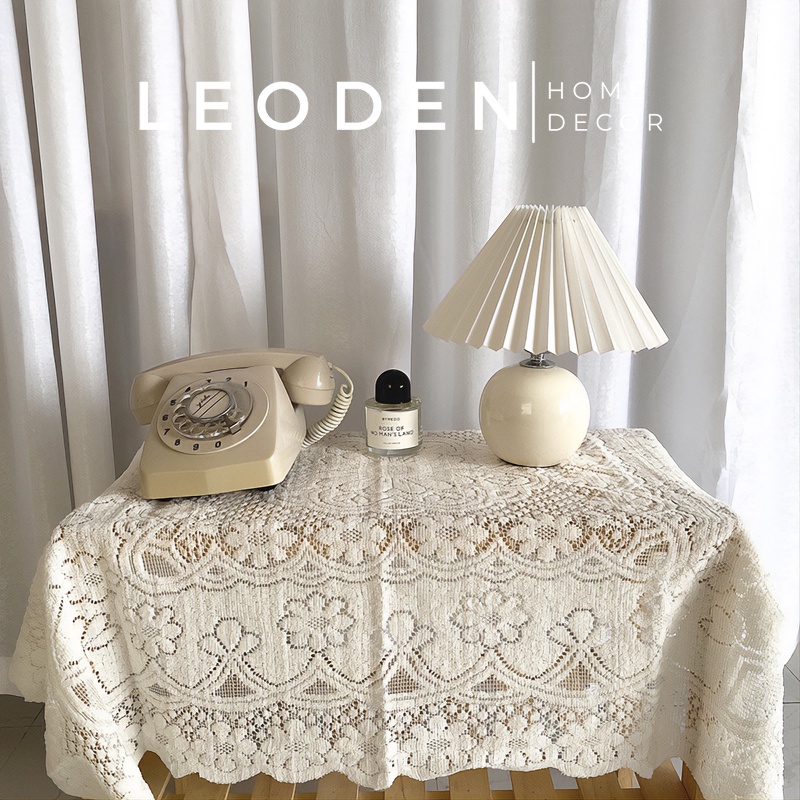 Khăn trải bàn vintage phối ren hoa màu trắng , khăn trải bàn decor – LEODEN Decor✅ CAM KẾT SẢN PHẨM: