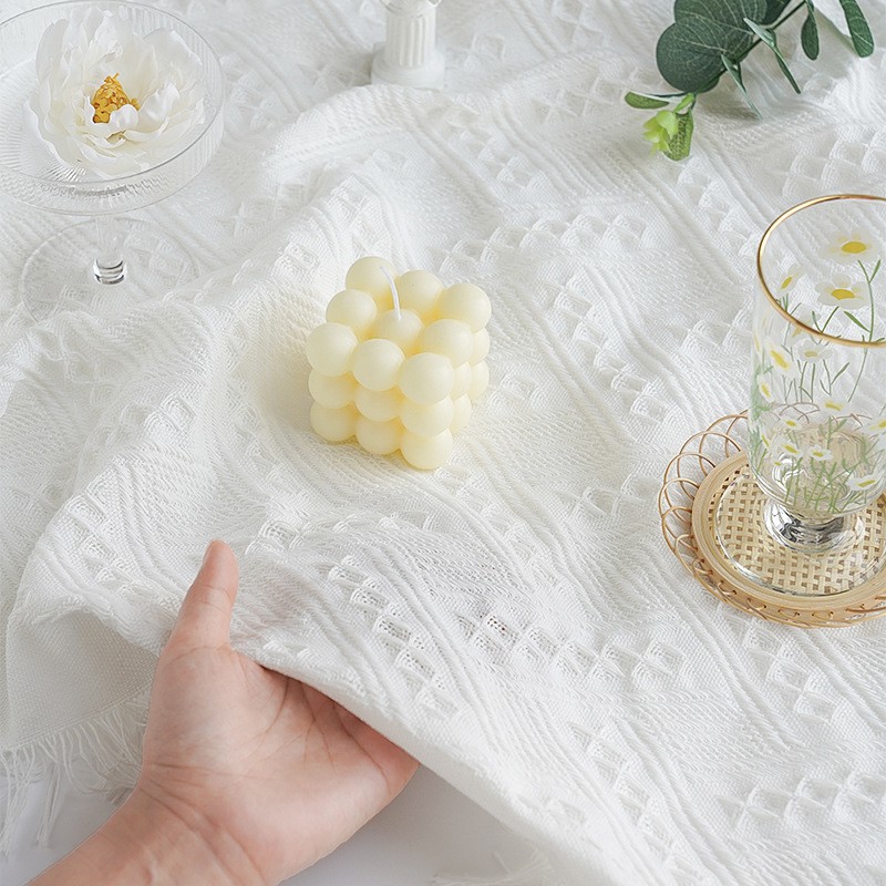 Khăn trải bàn vintage phối ren trắng - decor trang trí nhà cửa - làm đạo cụ chụp ảnh size 90 x 90 cm